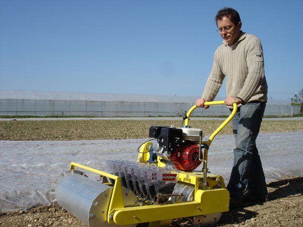 تعمل هذه الوحدة على مبدأ بث كمية معينة إلى استراحة سابقة الإعداد في الأرض. حتى أن الشتلات لا تطير بعيدا في اتجاهات مختلفة ، يتم وضع بذر المكبس 5 سم فوق مستوى الأرض.