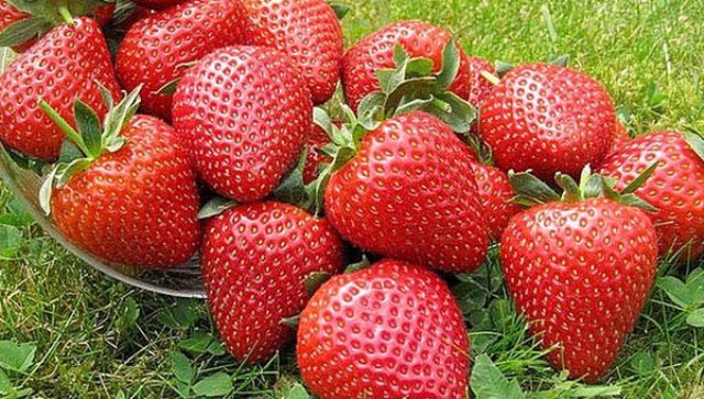 التوت من هذا الصنف كبيرة ورائحة.، شكل مخروطي ممدود مع رقبة صغيرة. يمكن أن يصل وزنه إلى 90 جرامًا. اللحم أحمر وكثيف وغض. Achenes الأصفر ، بارز فوق الجلد الكثيف من التوت ، بحيث لا يصاب بعد جمع. بيري بسهولة فصلها عن sepals.