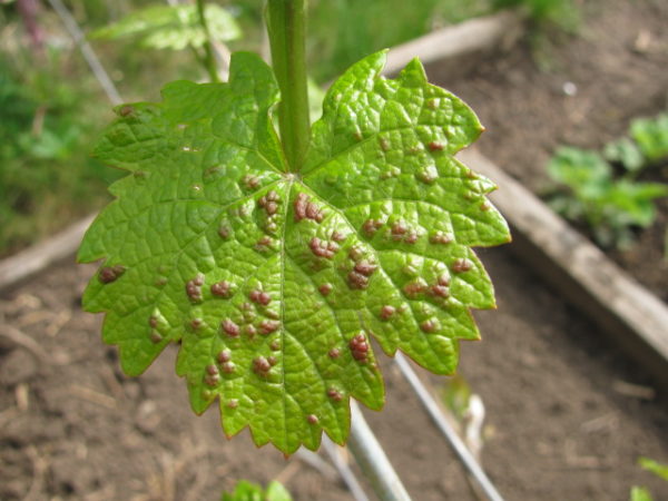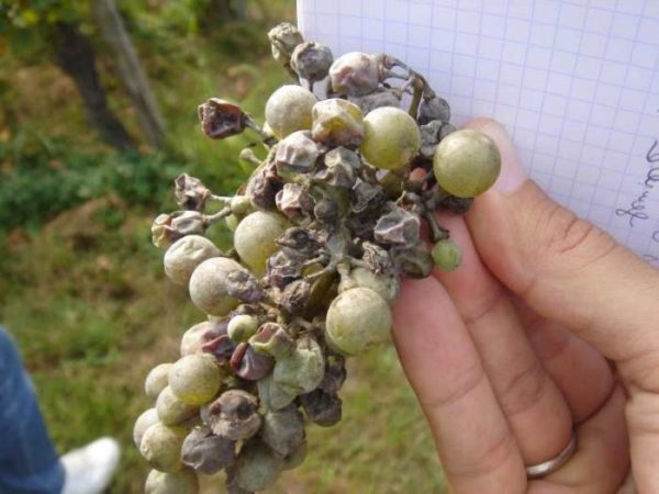 - точкова некроза, Появява се след зимата. Той се проявява в началото на появата на петна по листата, а след това изсъхва и изсъхва на лозата. Напръскан с препарати, съдържащи мед.