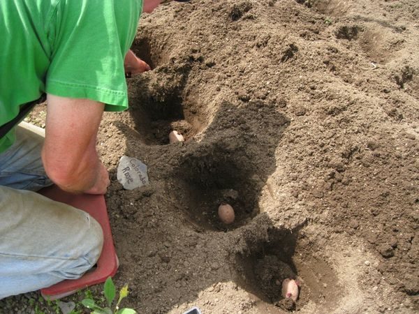 - Unter dem Loch landen. Im Herbst empfiehlt es sich, eine Parzelle vorzubereiten: Düngung, Mulch den Boden. Im Frühjahr werden die Knollen durch Ausheben von Löchern bepflanzt. Gekeimte Knollen werden bis zu einer Tiefe von 8-10 cm in das Loch eingebracht. Es wird empfohlen, die Oberseite mit Dung und Asche zu düngen.