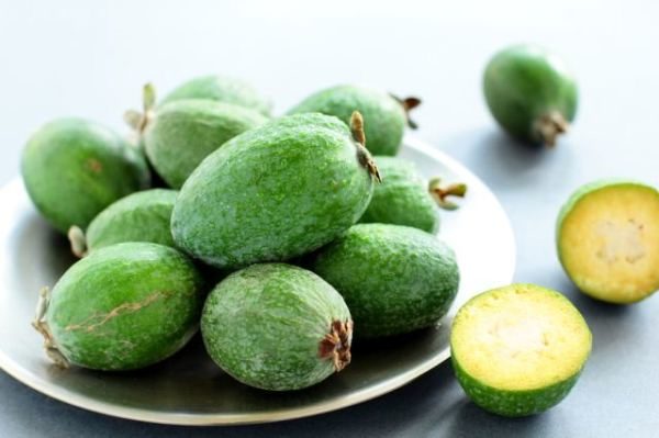 - Feijoa - Der Gehalt an Jod ist Meeresfrüchten nicht nachgesagt. Pürierte Früchte werden zu verschiedenen Gerichten und Getränken hinzugefügt.