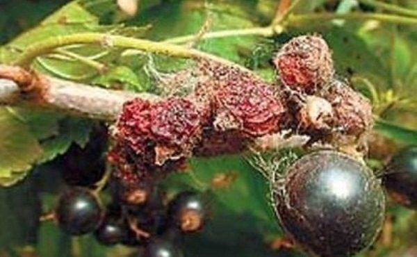 Niere Maulwurf - Das Insekt greift den Strauch im Frühjahr an, die Knospen und Beeren trocknen und fallen ab, die Triebe werden braunbraun und trocknen dann.