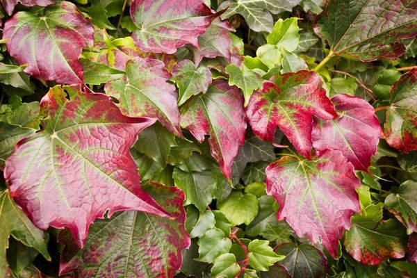 In der Wildnis erobern die Trauben auf den ersten Blick Blattschönheit. Im Sommer sind sie tiefgrün, im Frühling und im Herbst sind alle Rottöne (von blassem und dunklem Rosa bis Kastanienbraun).
