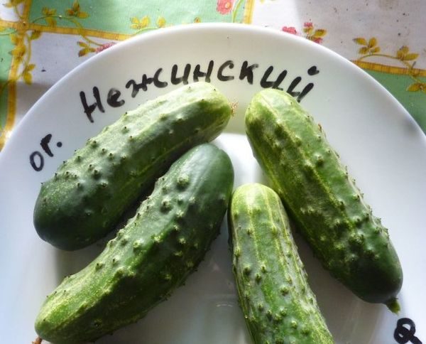 - Nezhinsky - μια ποικιλία επικονιασμένη από τις μέλισσες, που χαρακτηρίζεται από ένα ισχυρό στέλεχος, φρούτα μεσαίου μεγέθους (μήκος 10-12 cm, βάρος 90 g) και υψηλή απόδοση (8 kg ανά 1 m2). Nezhinsky αντέχει τις χαμηλές θερμοκρασίες, είναι ανθεκτική σε πολλές ασθένειες. Τα αγγούρια έχουν υψηλές γευστικές ιδιότητες.