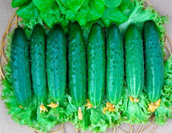 - Valdai - Ο θάμνος αρχίζει να αποδίδει καρπούς την 45η μέρα μετά την εμφάνιση του βλαστήματος. Τα λουλούδια σχηματίζονται ως επί το πλείστον θηλυκά, επομένως απαιτείται η γονιμοποίηση από τις μέλισσες. Το μήκος των χόρτων είναι περίπου 10-11 εκατοστά, μέχρι 4,5 κιλά καλλιέργειας απομακρύνεται από τον θάμνο. Το υβρίδιο έχει σχεδιαστεί για συντήρηση, αλλά λόγω της ευαίσθητης γεύσης του, χρησιμοποιείται επίσης για σαλάτα.