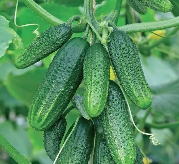 - Θάμνος - ένα συμπαγές φυτό που χρειάζεται επικονίαση. Το μήκος των χόρτων φτάνει τα 8 cm και ζυγίζει 90 γραμμάρια. Η παραγωγικότητα είναι σταθερή με σωστή φροντίδα (3 κιλά ανά θάμνο). Η ιδιαιτερότητα της ποικιλίας είναι αντοχή και ισχυρή ανοσία. Τα αγγούρια έχουν καθολικό σκοπό.