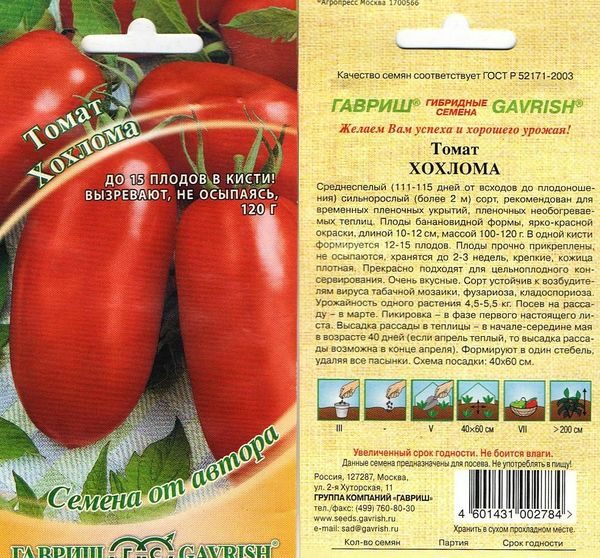 Η ποικιλία ντομάτας Khokhloma της agrofirm επιλογής Gavrish συμπεριλήφθηκε στο Μητρώο Κρατών της Ρωσικής Ομοσπονδίας το 2004. Σύμφωνα με το χαρακτηριστικό και την περιγραφή προορίζεται για καλλιέργεια στο κλειστό έδαφος σε κήπο και αγροκτήματα.