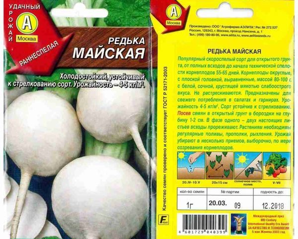 Πρώιμα μικρά φρούτα ποικιλίες που έχουν σπαρθεί τον Μάρτιο. Τα φρούτα ωριμάζουν σε 40-45 ημέρες, κακή απότομη, ζουμερή - πλούσια πηγή πρώιμων βιταμινών.