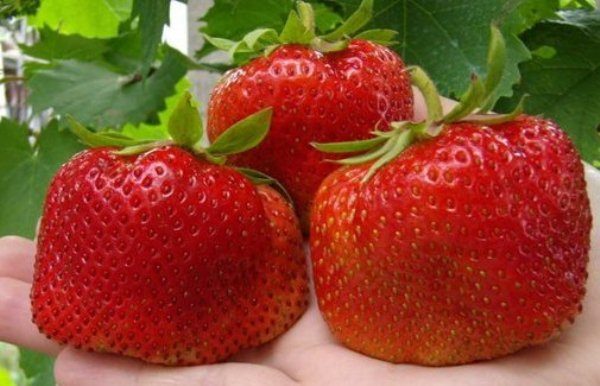 Τα περισσότερα σύγχρονα μεγάλα φρούτα υβρίδια φράουλας είναι γενετικά προγραμματισμένα να ασκούν εντατικά ως καλλιέργεια ενός έτους. Η μάζα των μούρων φτάνει 20-30 γραμμάρια. Όταν μεταφέρετε ουσιαστικά καμία ζημιά. Κηπουροί σημειώνουν την αντίσταση των μεγάλων ποικιλιών σε ασθένειες και παράσιτα. Η γεύση της φράουλας ζουμερή, γλυκιά, κατώτερη σε γεύση σε μικρά φρούτα.