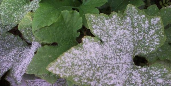 Mealy dew. The leaves are first affected, then the disease damages the whole plant. Absorbs plant nutrition, reduces yield. Distributed with fluctuations in temperature, excess nitrogen. It is treated by spraying colloidal sulfur, manure infusion, a solution of potassium permanganate.