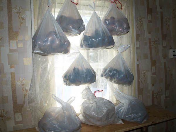 - In polyethylene. You need to put the tubers in packages of 10 pieces and make a lot of small holes for the passage of oxygen. Packages are recommended to be hung out in the lit room, but not under direct sunshine. Hold until the first shoots.