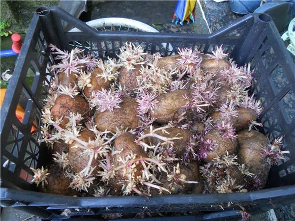 Potato should be stored in the basement in plastic containers. Before planting a couple of days should get and sort out the fruit. Choose medium sized sprouted potatoes, then it will be easier for it to germinate in the soil.