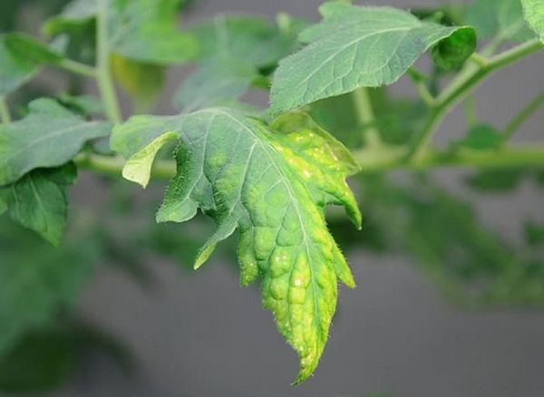 With this disease, the leaves of tomatoes lose their elasticity and change color. The cause of this disease are: