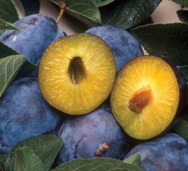 The fruit of the “Blue Plum” has an ovate, round shape, thanks to which the variety is also called “Egg blue”. The flesh of the fruit is juicy, colored yellow. Plum skin is thick, though thin. The berries are thick and smooth. The plum is painted blue and has a light white bloom. The stone is oval in shape, small in size and well separated from the pulp. The weight of the berry is about 35 grams. Blue plum fruits contain a lot of sugar and a low amount of acid. The fruits have a soft aroma.