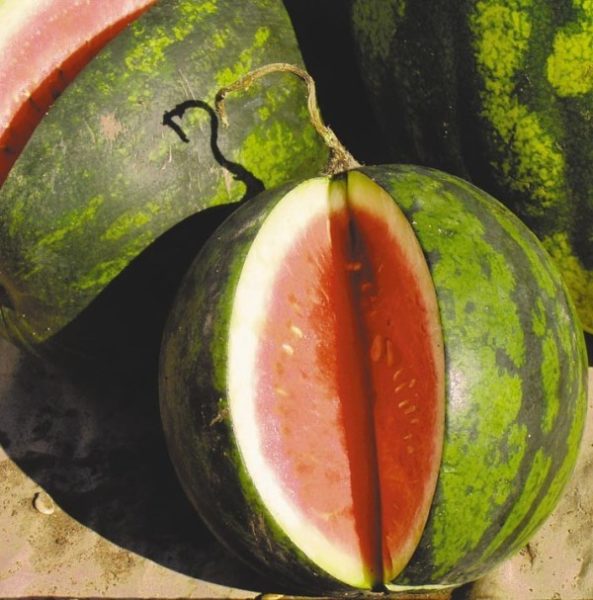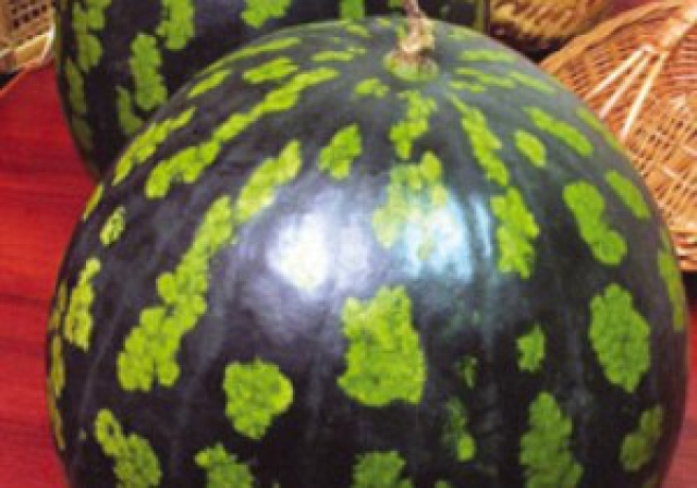 The fruit ripens in 75-85 days with an average weight of 10-11 kg. The plant does not have a high yield, but fruits steadily. The bright red pulp of the berry is juicy and crunchy with a characteristic watermelon sweetness. The peel has a striped color, the thickness is small. The variety is immune to disease and moisture. The harvest is well preserved and transported.