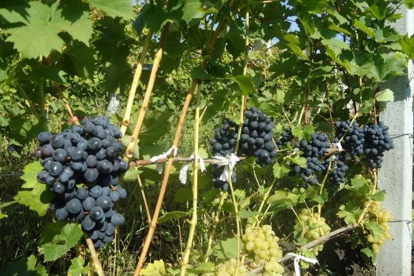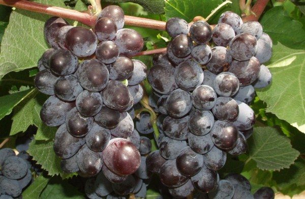 One of the ancient varieties, with all the usual qualities, Black grapes have special taste and beneficial properties: dark color indicates a huge amount of antioxidants, the use of which for the body is not overestimated. Anthocyanins are able to slow the growth of cancer cells, inflammatory processes, facilitate the course of diabetes mellitus (recommended for patients with diabetes, as it has a low glycemic level), prevent the development of fatty layers. High-yielding and cold-resistant, but requires careful maintenance.