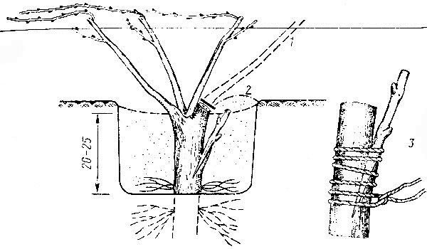 - the method of instilling vines into a prepared trench (a layer of soil from 15 to 30 cm depending on the resistance group);