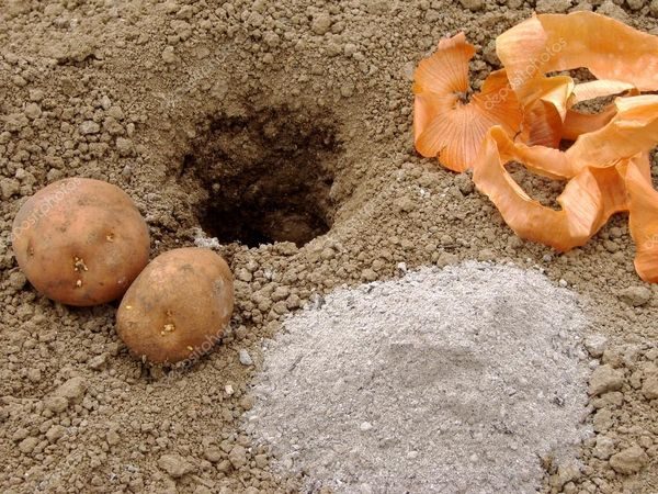 - Buccia di cipolla e cenere messe nel buco prima di piantare