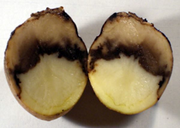 Capace di infettare il gambo, foglie e tuberi di una pianta. Quando il tempo umido al momento della fioritura delle foglie sono coperti con macchie grigie o marrone scuro. Quando viene rilevata una malattia, le parti superiori devono essere tagliate e i cespugli spruzzati con mezzi chimici.