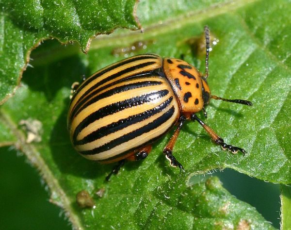 Un noto parassita a strisce che si nutre di foglie e giovani germogli, e quando mangia tutti i verdi, procede verso i tuberi. Il coleottero è particolarmente pericoloso al momento della fioritura, quando la pianta forma tuberi e se non si esegue la prevenzione, si può perdere fino a metà del raccolto.