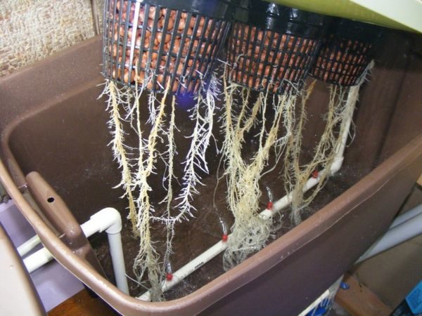 - sistema idrico. Una delle opzioni più facili. L'impianto è tenuto su una piattaforma galleggiante in soluzione. Le radici sono immerse nel liquido. Per fornire ossigeno a loro, l'aerazione viene effettuata con una pompa, altrimenti la soluzione nutritiva dovrà essere periodicamente aggiornata;