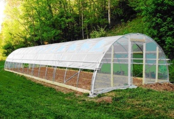 - Serre a telaiola pellicola rivestita è l'opzione più economica, inoltre, un tale design è installato molto rapidamente. Lo svantaggio di questa serra sarà una protezione insufficiente degli alberi durante il periodo invernale;
