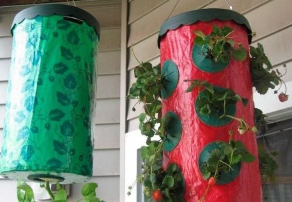 - Fragole in crescita in sacchetti in verticale
