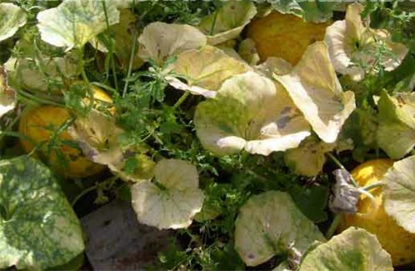 Une autre maladie - les virus du concombre et de la mosaïque de pastèque. L'infection se produit à l'aide de pucerons, qui transfèrent l'infection des plantes infectées aux plantes saines. En règle générale, cela se produit au deuxième stade de la période végétative et réduit le rendement presque deux fois.