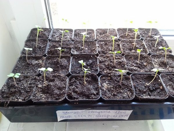 Lorsque les germes forment une ou deux feuilles, les plantules doivent plonger dans de petits conteneurs. Cela est nécessaire pour améliorer l'éclairage, élargir les zones nutritionnelles des racines et les renforcer.