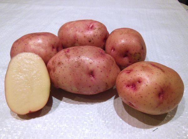 - Scarlett rouge - tôt. Tubercules de couleur écarlate à chair blanche, une fois cuits, ne changent pas de couleur.