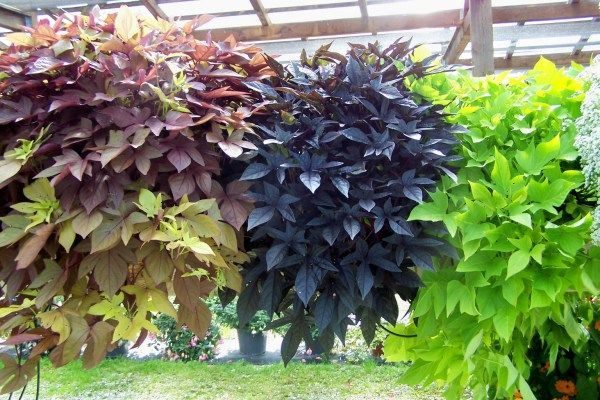 Liana est idéale pour l'aménagement paysager intérieur, extérieur et urbain. Pour ce faire, l'aménagement paysager s'applique variétés décoratives spectaculaires Ipomoea yam.