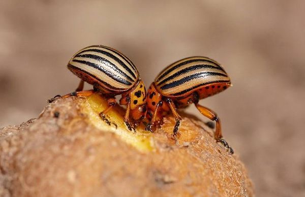 Doryphore - le ravageur le plus redoutable. Il est très vorace et sa population est très difficile à contrôler en raison de la reproduction rapide des individus et du nombre d'œufs pondus par la femelle. Un organisme nuisible importé d'Amérique du Nord a réussi à se faire une réputation de véritable tueur de cultures.