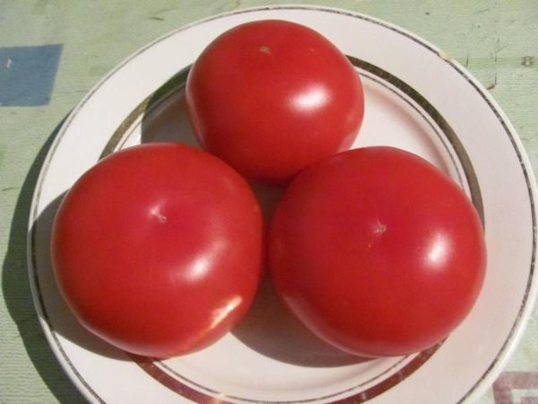 Avant la maturité technique du fruit ne prend que 85 à 90 jours depuis l’apparition de germes au-dessus de la surface du sol. La plante est un type déterminant avec une hauteur d’environ 50-70 cm, les branches et la tige principale sont puissantes, ce qui confère au buisson une résistance pendant la période de fructification. Les tomates lourdes sous forme mature atteignent un poids de 300 grammes et certains spécimens jusqu’à 400 grammes. La forme des tomates est arrondie à plat. En règle générale, la brousse a un aspect esthétique: sur un cil vigoureux et court, des grappes de couleur rouge vif sont placées. En moyenne, 4,8 à 5,2 kg sont retirés d'un buisson. De la pulpe de viande, on obtient les sauces et les ketchups qui sont idéaux pour le goût, le roi des premiers est utilisé pour la consommation fraîche.