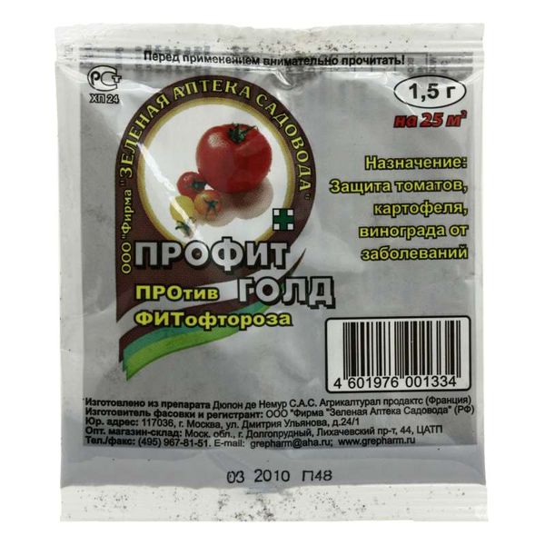Lorsque l'humidité du sol et l'air sont augmentés, la plante est exposée à diverses maladies fongiques et bactériennes: mildiou, pourriture grise et blanche, pourriture des racines, etc. Lors de l'identification des premiers signes, la culture doit être traitée avec les préparations suivantes: