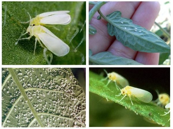 Un insecte de petite taille aux ailes blanches s’installe sur le dessous de la feuille avec des hordes entières. La friandise préférée est la sève des plantes. En outre, les parasites sont porteurs de nombreuses maladies et infectent les plates-bandes de tomates avec des déchets. Les buissons touchés commencent à s'estomper.