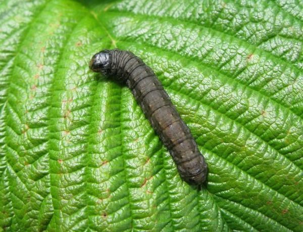 Papillon bicolore (plus tard chenille), en tête nocturne. La longueur de l'insecte atteint 3-4 cmcouleur - vert clair avec une bande latérale jaune vif (chenille) et marron dans différentes nuances (papillon). Les insectes voraces se nourrissent des feuilles et y forment des trous. D'intérêt sont les fruits immatures.