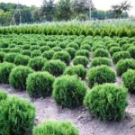 Pour la bande intermédiaire, variétés recommandées et hybrides de thuya occidental. Brabant de qualité sans prétention approprié pour la formation du mur, dans les coulisses. Un seul thuya s'élargit, un atterrissage rapproché d'un thuya (après 0,5 m) formera un mur trop bas. La distance optimale entre les plants de la variété Brabant est de 1 m. Une variété intéressante est le thuya de Wagner, qui a une forme arrondie et une croissance plus courte. Thuja aime la douche, la pulvérisation, l'aspersion.