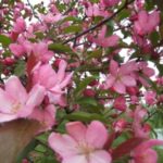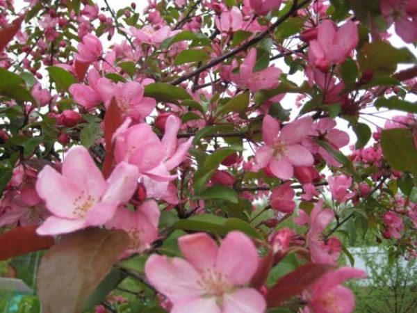 Le pommier habituel a beaucoup de sous-espèces ornementales qui fleurissent plus abondamment que les simples pommiers. Les fleurs écarlates en fleurs, le pommier d’Ola est inondé de fleurs pour que vous ne puissiez pas voir les branches.