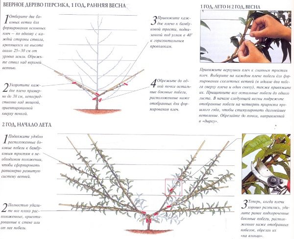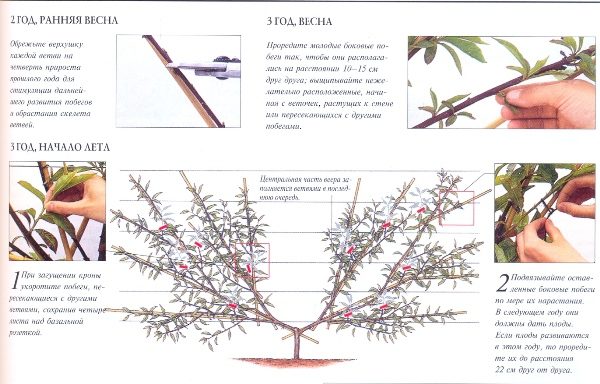 Au début du printemps, vous devez bien former la cime de l'arbrepour cela, supprimez toutes les branches latérales en ne laissant que 3 branches squelettiques, le tronc central étant coupé légèrement au-dessus de la branche supérieure du squelette.