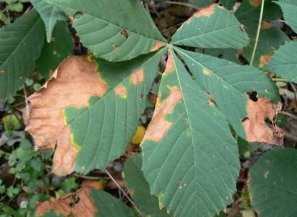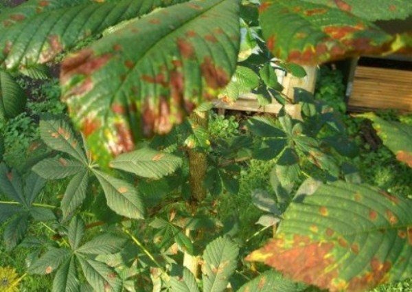 Les maladies qui apparaissent sur le feuillage de l'arbre peuvent être trouvées assez souvent. Récemment, quelle que soit la variété de châtaigne (régulière, cheval et autres), les feuilles commencent à jaunir au milieu de l’été, puis à devenir complètement rouillées. Habituellement le traitement commencé à l'heure donne de bons résultats.