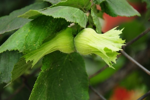 Arbuste Grand Noisetier (Noix de lombard) a des branches grisâtres, atteignant 15 mètres de long. Les feuilles sont grandes et dentées. Il ne tolère pas les gelées. Souvent cultivé dans les Balkans.