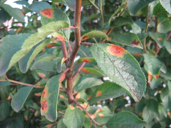 En juillet, sur les jeunes feuilles de prunier, vous pouvez remarquer des taches de rouille, qui grossissent progressivement.Les arbres affectés ont perdu leur couverture foliaire plus tôt. Laisser la prune dans cet état est impossible. La résistance à l'hiver de la plante et la récolte future sont fortement réduites.