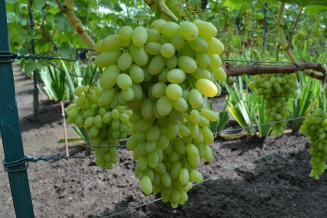 Fait référence aux variétés à maturité précoce, la durée de maturation des baies est de 120 jours. Les baies ne contiennent pas de graines. Le poids de chaque brosse est de 700 à 2000 grammes. Les viticulteurs expérimentés recommandent une récolte rapide, afin que les grappes ne s'effritent pas. La forme des baies est ovale-oblongue, la couleur à maturité est jaune doré.
