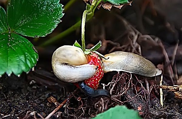 - Sümüklü böcek böcekleri çilekli çileklerin meyvelerine zarar verir